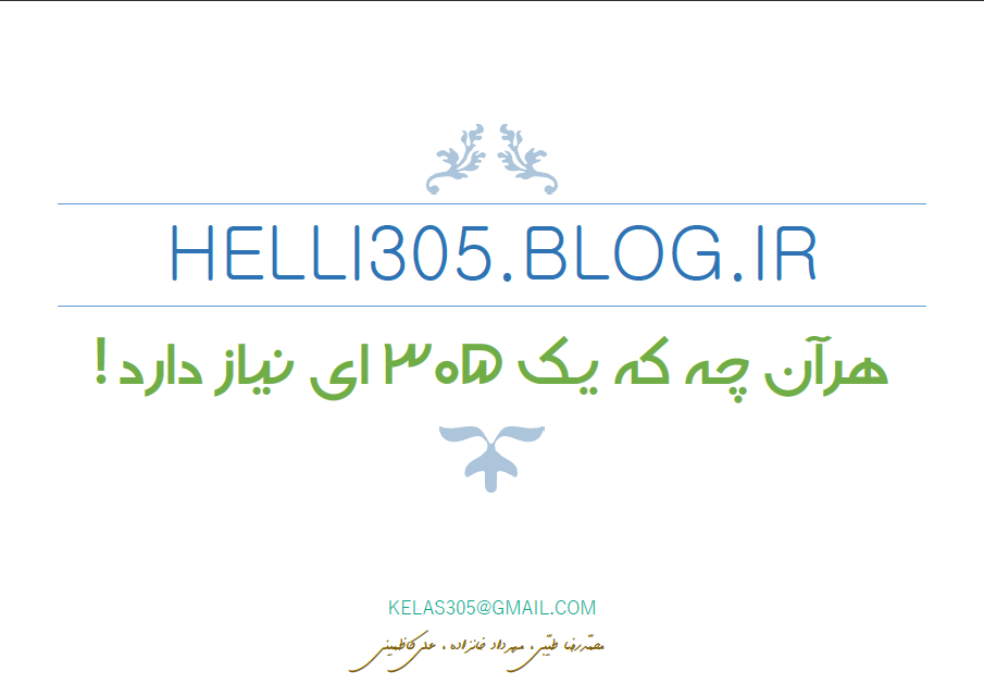 این وب گاه توسط جمعی از بچّه های کلاس 305 دبیرستان علّامه حلّی تهران ایجاد شده است و هدف آن اطّلاع رسانی و گردآوری مطالب ، جزوات و . . . و تفریح و سرگرمی می باشد.
